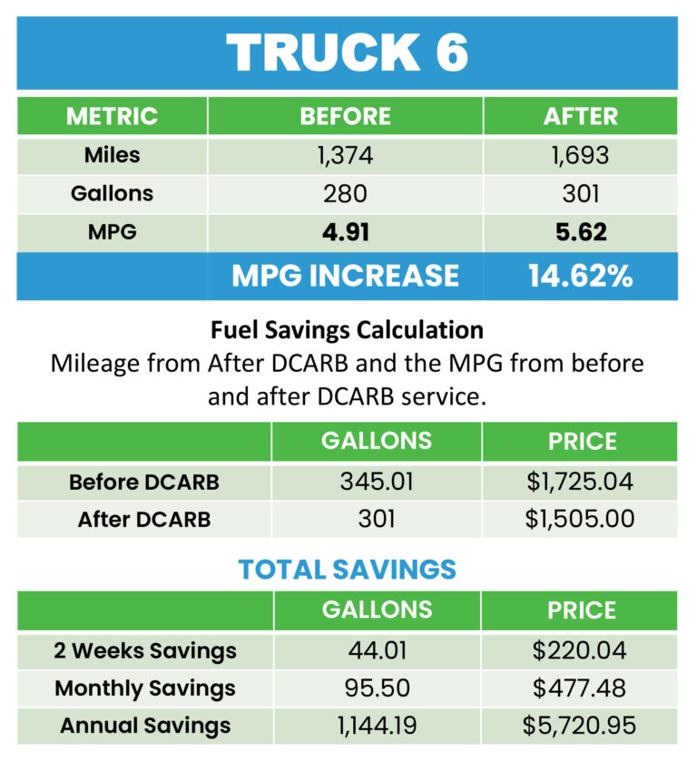 The PM Program bill cycle begins 90 days from when the program starts. Within a day following your first DCARB service, you will realise the on average 5% fuel savings. If your truck consumes more than $1,800 per month of diesel, the 5% fuel savings will more than cover the monthly fees. Not to mention all the additional benefits such as less downtime and maintenance costs.
